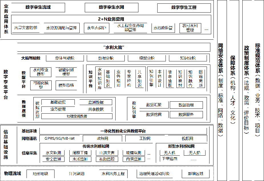 结合地区信息化发展现状,依据《数字孪生流域建设技术大纲》、《水利业务“四预”基本技术要求》等文件,全面推进算据、算法、算力建设,加快构建具备预报、预警、预演、预案功能的智慧水利体系,覆盖“2+N”业务应用,为新阶段水利高质量发展提供有力支撑。